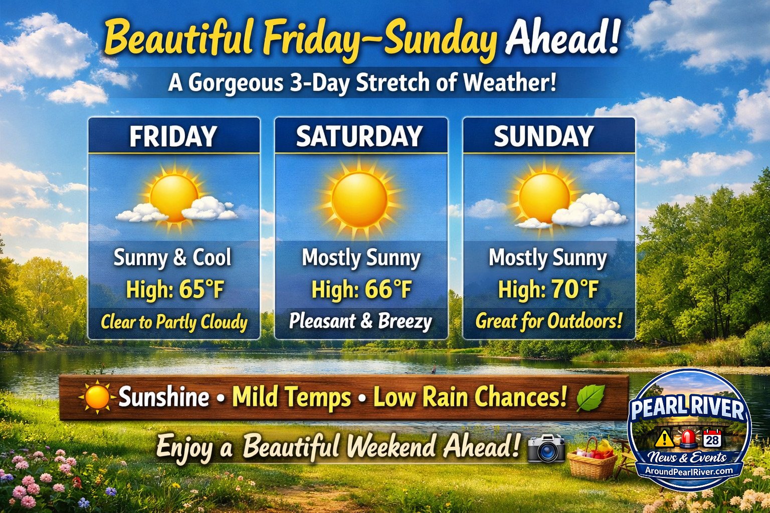 Get ready for a gorgeous 3-day stretch of weather! Starting Friday through Sunday, conditions look ideal for enjoying the outdoors. 🌳📸
